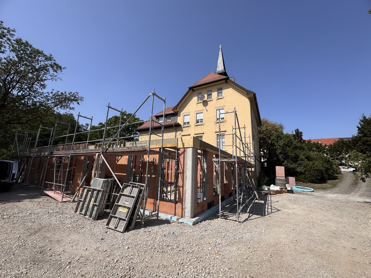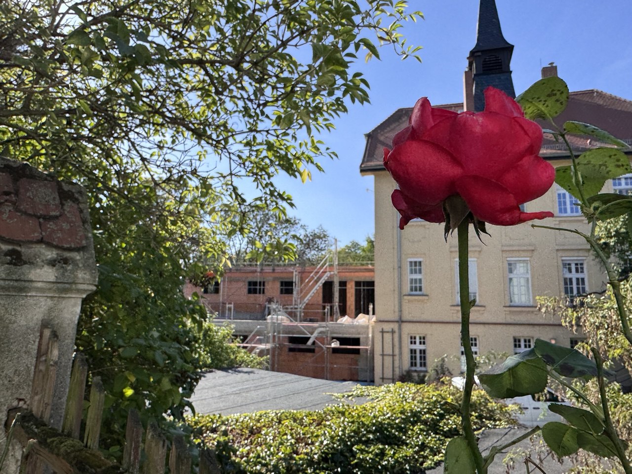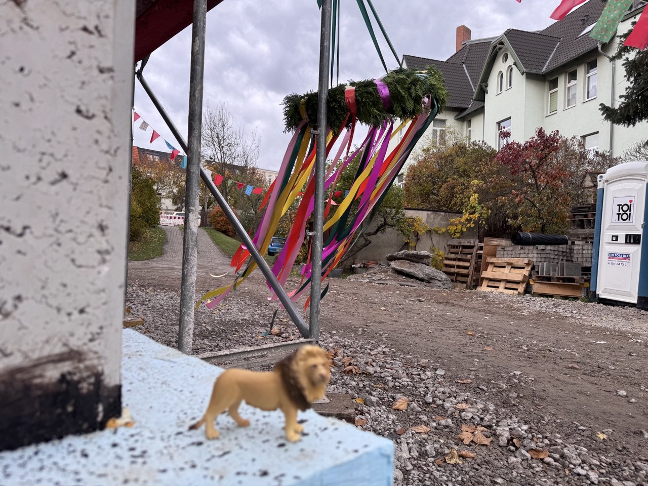 Seit über einem Jahr wird nun schon an der Berliner Chaussee 42 gebaut und gewerkelt, gebuddelt und gegossen. Der Garten wurde einmal scheinbar komplett umgewühlt, aber unser geliebter Kletterbaum und unser Märchenhaus konnten über die Baustellenzeit gerettet werden. Es gibt einen fantastischen Anbau mit ganz viel Platz für die Kita und die Gemeinde, es gibt eine Rampe, so dass auch kleine und große Menschen mit Handicap zu uns kommen können. Und immer dabei – Sir Leopod zu Cracau, der am Baustellenfortschritt sehr interessiert ist, denn die Kita liegt ihm sehr am Herzen und er freut sich auf den Tag, an dem hier endlich wieder Leben in Bude kommt.